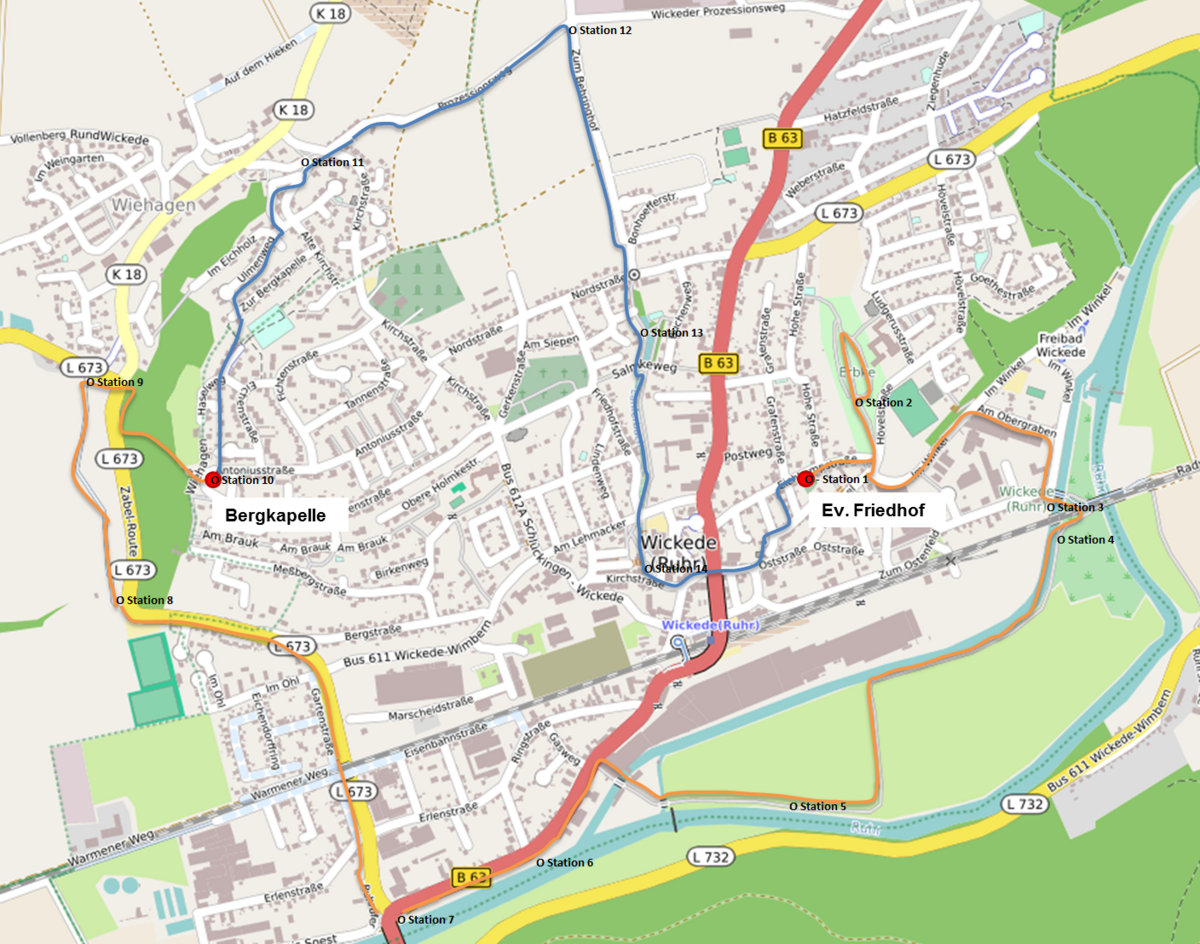 Er verläuft rund um Wickede (siehe Karte) und umfasst 14 Stationen. Er kann als Ganzes und in zwei Teilen gegangen werden. Man kann ihn alleine gehen oder als Gruppe unter Führung eines Meditationsbegleiters. 14 Hinweistafeln an den Stationen laden ein zur Kontemplation, zum Nachdenken und Nachgehen der eigenen Situation. Zusätzliche Anregungen sind durch einen Barcode abrufbar.